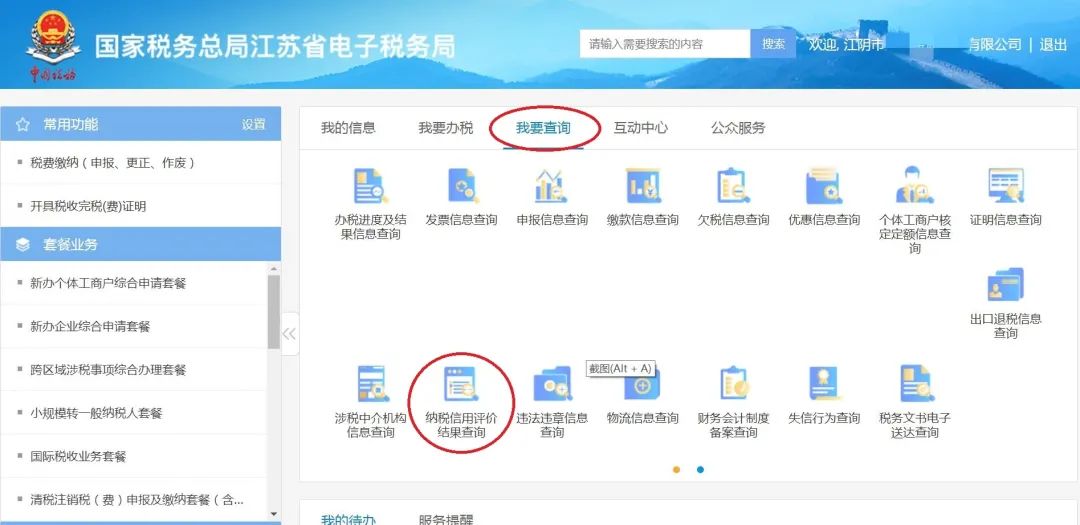 登录江苏省电子税务局后,点击“我要查询——纳税信用评价结果查询”即可查询上一年度的纳税信用评价结果。