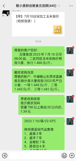 目前小麦市场价格继续上涨,详情点击图片进入小程序查看更多企业报价!为做好防汛工作,道路会进行管制,暂时不能往公司送小麦了。等候通知今天一早醒来,小美看到不少群里还有自媒体在聊小麦停收的消息,好奇的了解了一下,才发现这个停收只是受天气影响,部分企业的道路收到管制,或者降雨量太大,暂时停止收购,没想到这样的一则公告在小麦市场还引起了关注,其实就算企业不停收,最近想要卖粮的朋友也会观望一下,毕竟强降雨带来的影响太大。