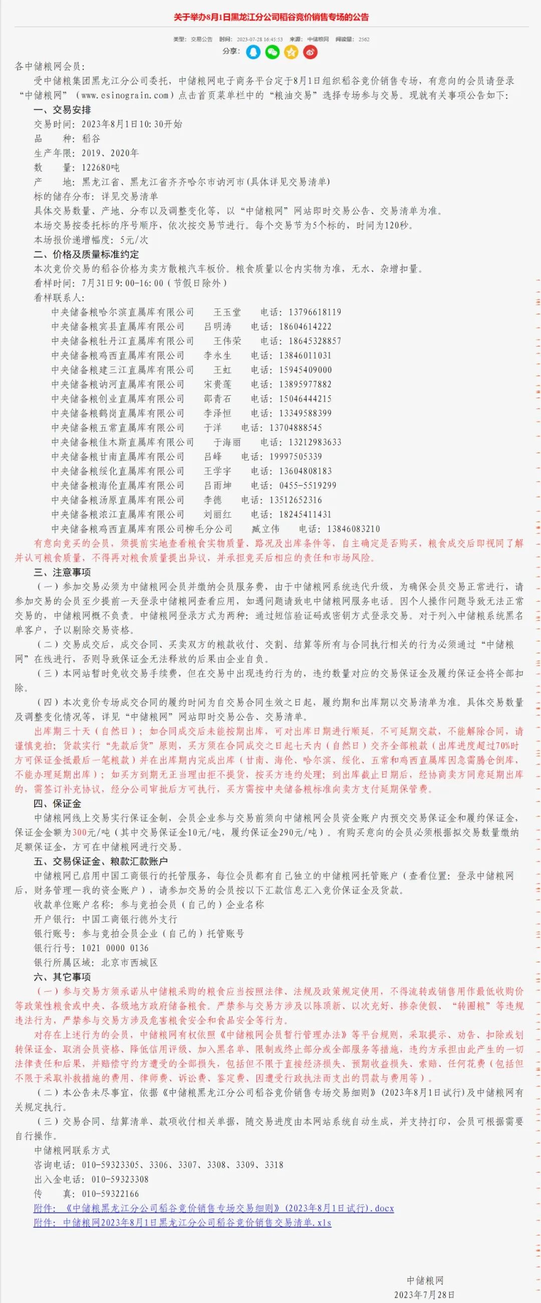 《中储粮黑龙江分公司稻谷竞价销售专场交易细则》(2023年8月1日试行).docx