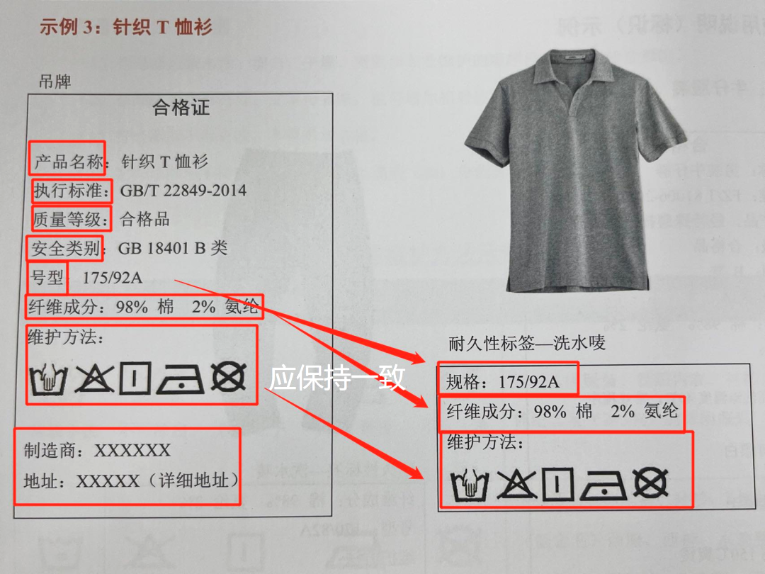 注:以上三项内容可以不必重复在吊牌上标注,如重复标注,应注意其内容要保持一致。