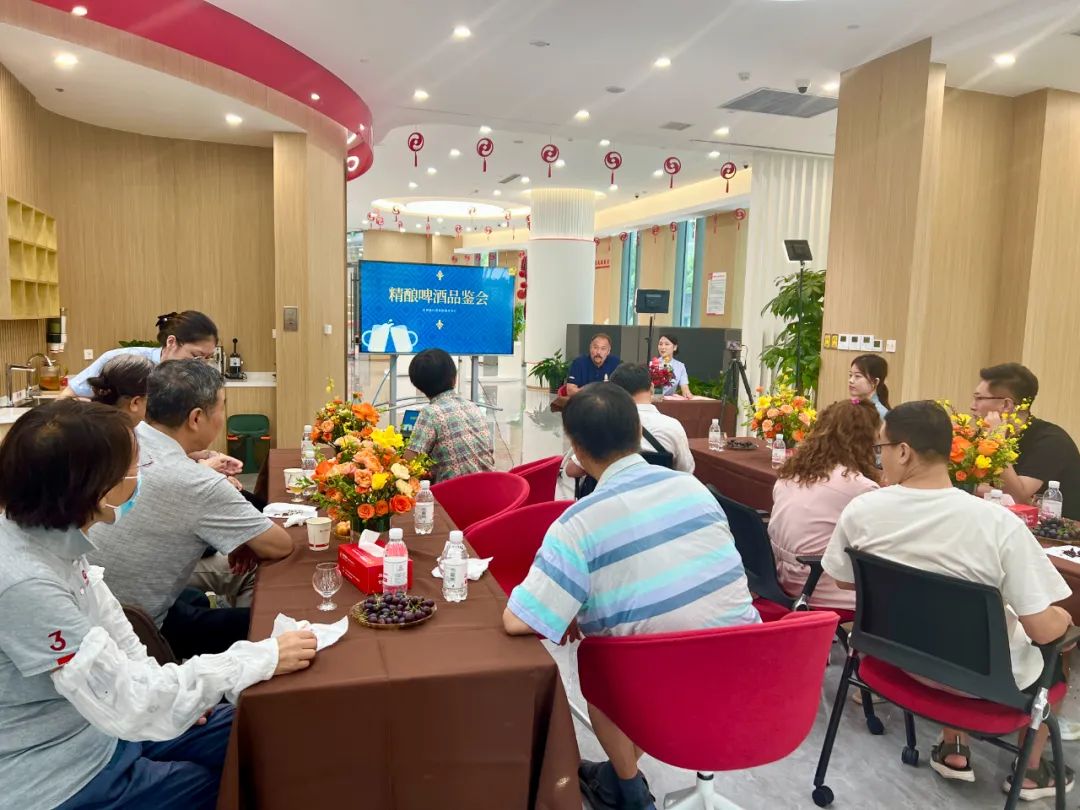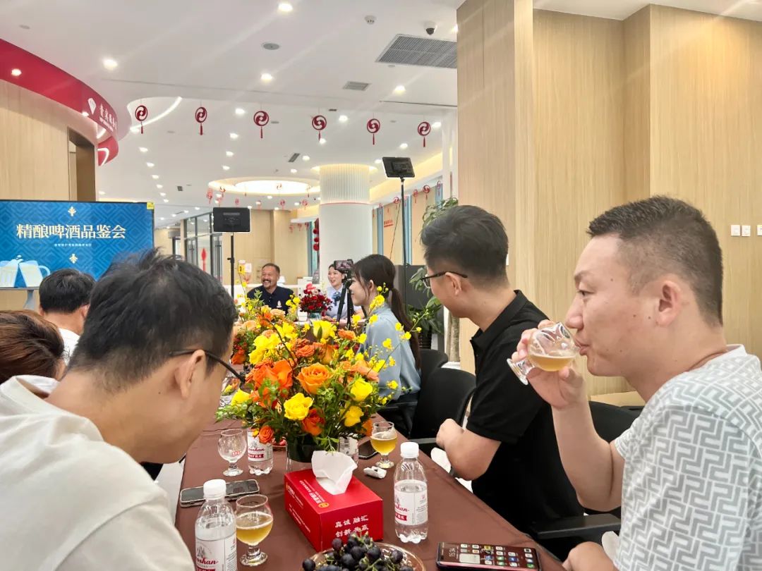 应邀前来的来自青西金啤的精酿品鉴师吴凯向现场的客户和直播间里的网友们细致讲解了精酿啤酒的起源、发展历程以及酿造过程,让大家对精酿啤酒有了更深入的了解。跟随着活动的流程,大家共同品尝了九种不同风格的精酿啤酒,吴凯详细介绍每款啤酒的酿造工艺和专业知识,从清爽的淡雅拉格到浓郁的美式燕麦世涛,从酒花香气到麦芽的甜味,每一款都展现了独特的风格和个性。活动现场与直播间内也热烈交流着大家各自对啤酒的感受和体验,欢笑声和掌声不时响起,气氛热烈。