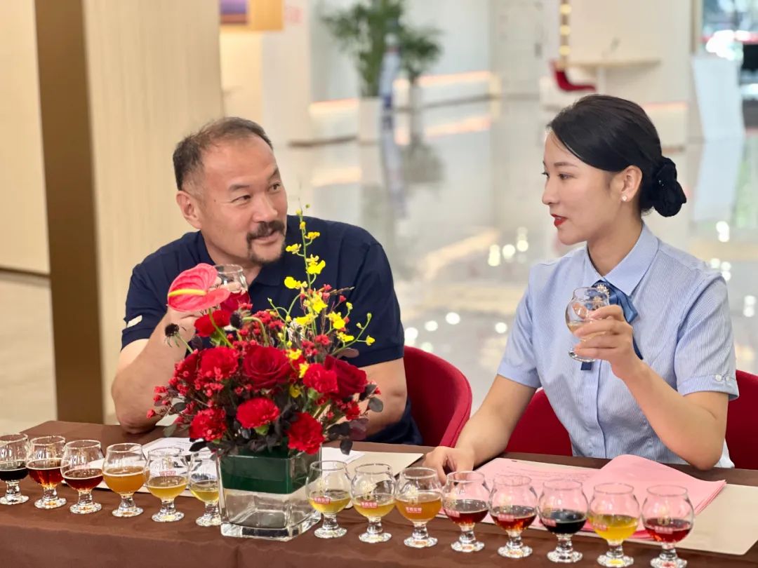 2023年7月28日,青岛国际啤酒节盛大启幕的第二周,一场别开生面的精酿啤酒品鉴会在东营银行青岛西海岸支行营业厅完美举行。活动现场,应邀前来的客户们跟随着精酿师一起品鉴精酿啤酒,学习精酿知识,会好友,同畅饮。同时,活动还同步启动了线上直播,两千八百多名网友齐聚直播间,多达3.3万的热情点赞,让大家一起感受了一场精酿啤酒的浓情盛宴。
