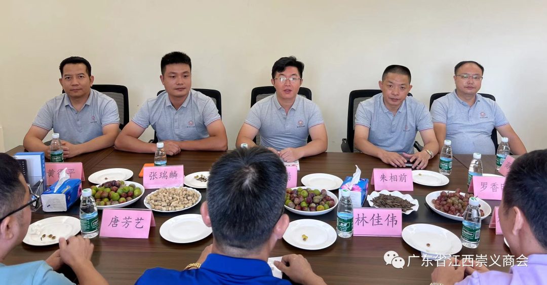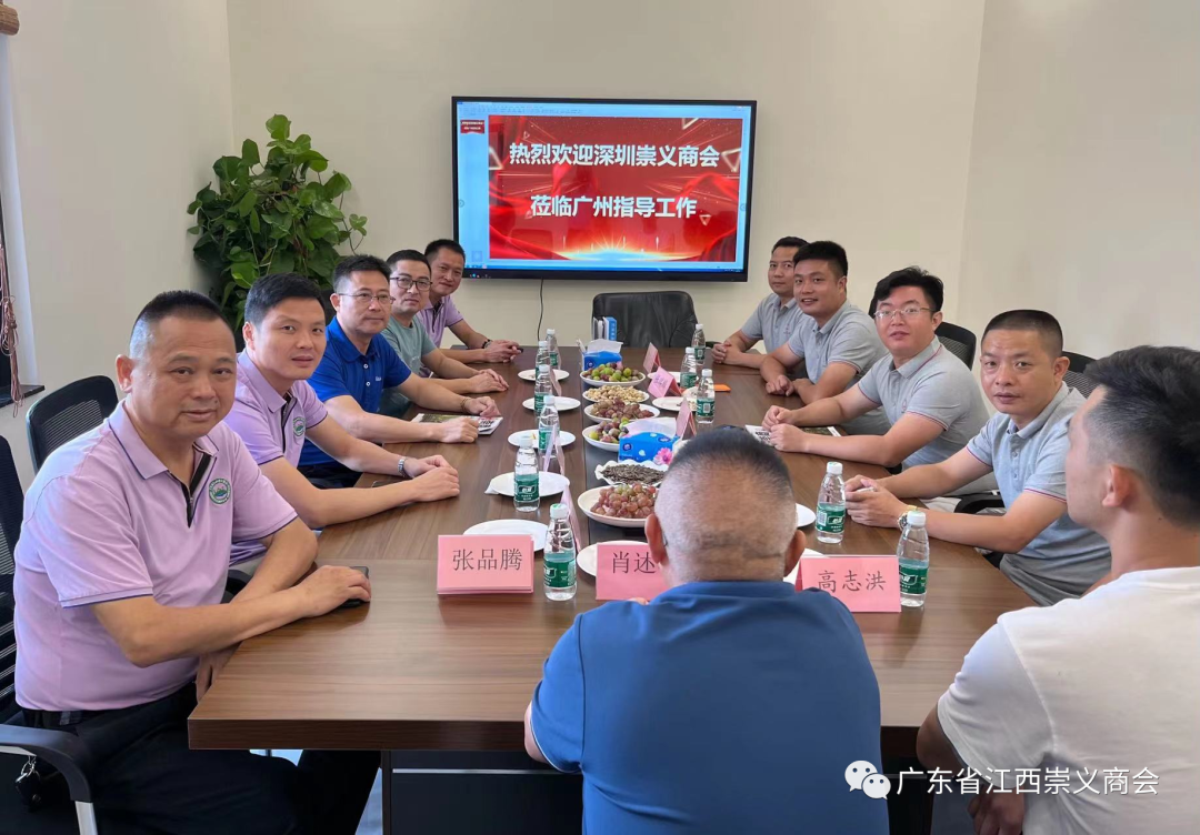 7月30日下午,应广东省江西崇义商会邀请,深圳市江西崇义商会轮值会长甘镇瑞、执行会长张瑞麟、常务副会长兼秘书长罗香明、副会长朱相前、副会长黄得平等一行人前来广州回访考察,受到商会会长张裕爱、轮值会长唐芳艺、执行会长林佳伟等领导的热情接待。