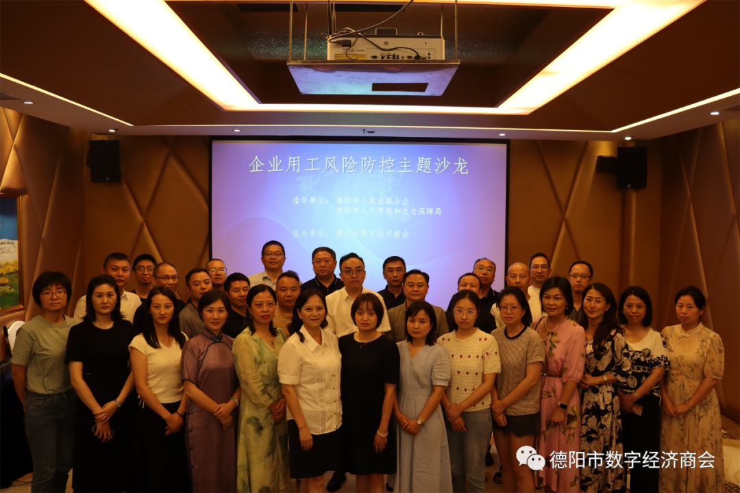 7月28日,由德阳市工商业联合会、德阳市人力资源和社会保障局指导,德阳市数字经济商会主办的企业用工风险防控主题沙龙在德阳蜀徽大酒店举行。