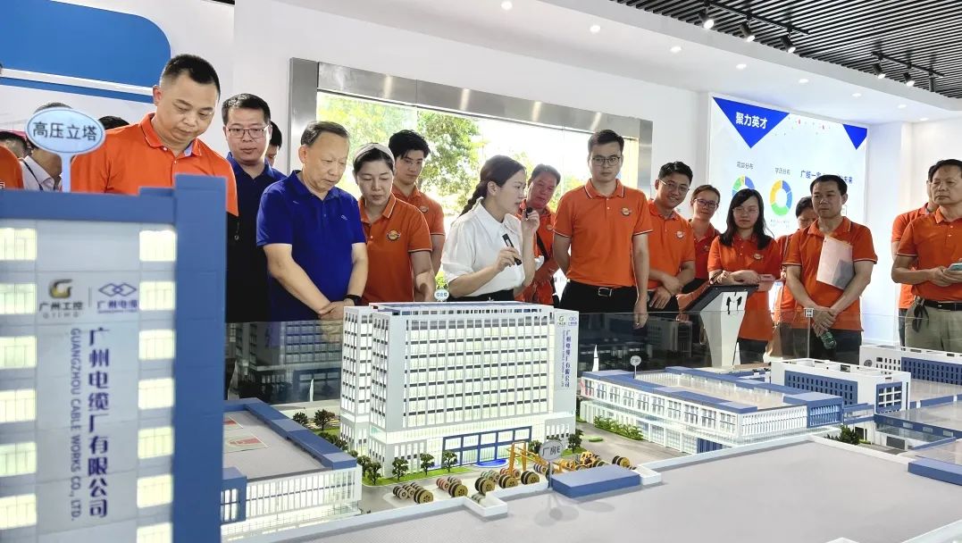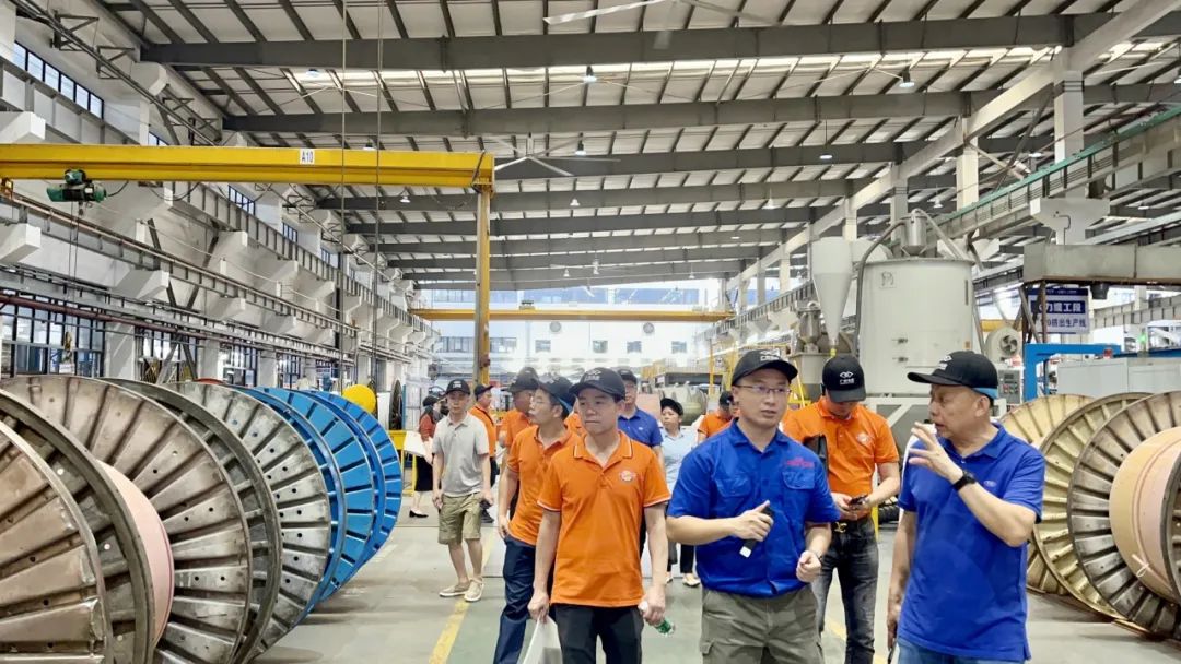 第二站,前往荣誉会长单位广州电缆厂有限公司(以下简称:广州电缆厂)学习交流。广州电缆厂党委书记、总经理余群光全程参与接待,在讲解员的带领下参观企业展厅,了解企业悠久的发展历程、标志性案例展示、以及下一步的发展蓝图的规划等。参观车间生产的标准化建设、智能化设备以及数字化管理,逐步从电缆产品向产业链发展,从生产工厂向产业园区发展,从单一制造向提供服务和解决方案发展,让交流团吸收优秀的企业文化和丰富的管理经验,为企业发展开拓新的思维模式,不断转型升级,加快企业的发展步伐。