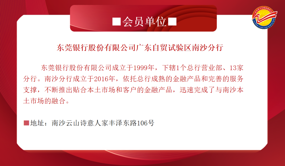 2023年商会第二期轮值会长孙鹏、黄淑文分别为新入会员单位颁发牌匾,共六家。分别是:丰亿(广州)电子有限公司,广州市南沙区榄核同心机械维修部,广东灵越钢化玻璃制品有限公司,广州市钊顺金属制品有限公司,广州市朝康印刷有限公司,东莞银行股份有限公司广东自贸试验区南沙分行。▲