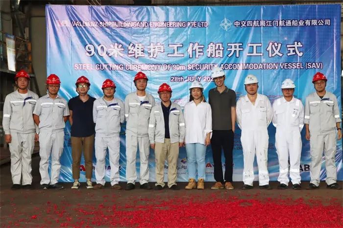 ■7月28日,由航通公司建造的90米维护工作船在制造中心顺利开工。90米维护工作船,全长90米,型宽23米,型深8.5米,设计吃水6.2米,设计航速10节,入籍ABS美国船级社,满足无限航区要求。
