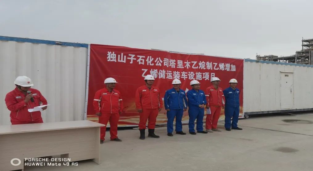 开工仪式由中国寰球工程有限公司塔里木乙烯储运装车EPC项目部主持,参建单位:独山子石化公司塔里木石化分公司、中国寰球工程有限公司、 吉林梦溪工程管理有限公司、中国石油天然气第一建设有限公司、化学工业第一勘察设计院有限公司各单位项目负责人在开工仪式上对承建工程表态发言,独山子石化公司塔里木石化分公司副总工程师尤文卿宣布增加乙烯储运装车设施工程开工,标志着该工程全面进入施工阶段。