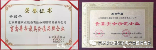 顺鑫鹏程食品分公司严格按照国家相关食品标准执行,遵循以消费者为主的经营理念,为百姓提供营养、健康、方便、快捷的猪肉产品。凭借完整的产业链和科学的食品安全控制管理体系,多次圆满完成国家重要活动、重大会议的猪肉及肉制品供应任务,积极承担企业食品安全的责任,履行食品安全义务。 荣获多项荣誉称号。