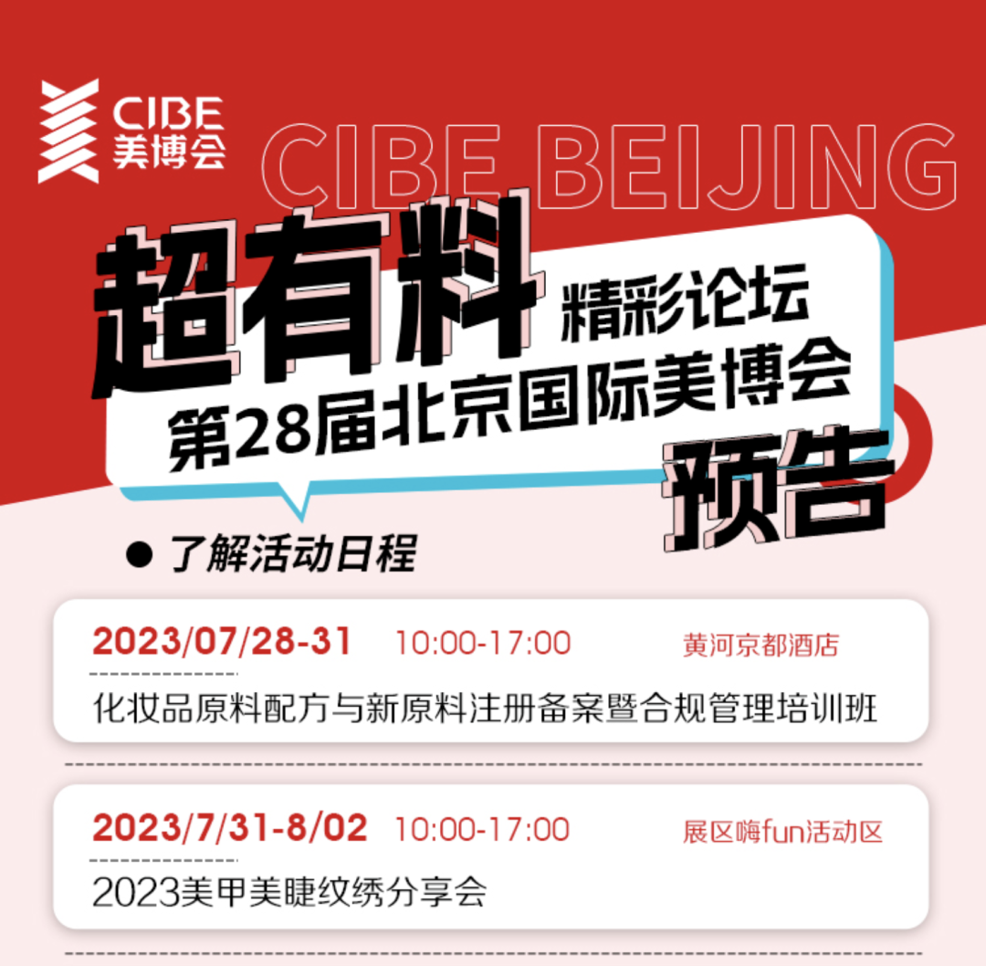 2023第28届CIBE北京国际美博会将于7月31日-8月2日在北京国家会议中心与大家见面,这次超有料!观众报名通道即将关闭,计划参会的朋友记得及时领取免费门票哦,快速入场免排队!