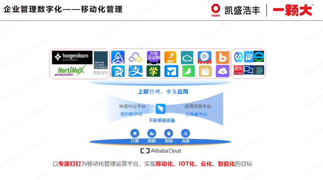 凯盛浩丰的发言人于浩杰表示,公司要“用标准化和智慧化的方式去做农业”,他认为这是中国农业高质量发展必然要走的一条路。因此,凯盛浩丰牵手钉钉,将业务、组织、人才的资源聚集,进行生态化赋能,实现业务数字化、组织在线化、决策数智化。”打造出亚洲最大的智能“蔬菜工厂”。