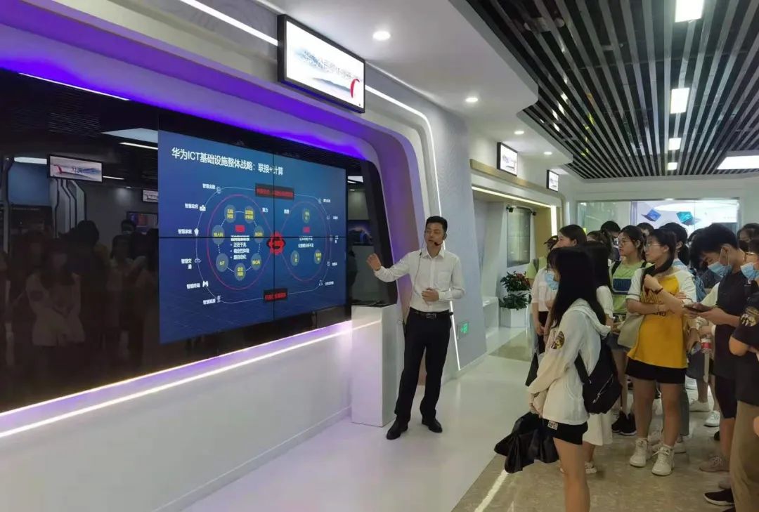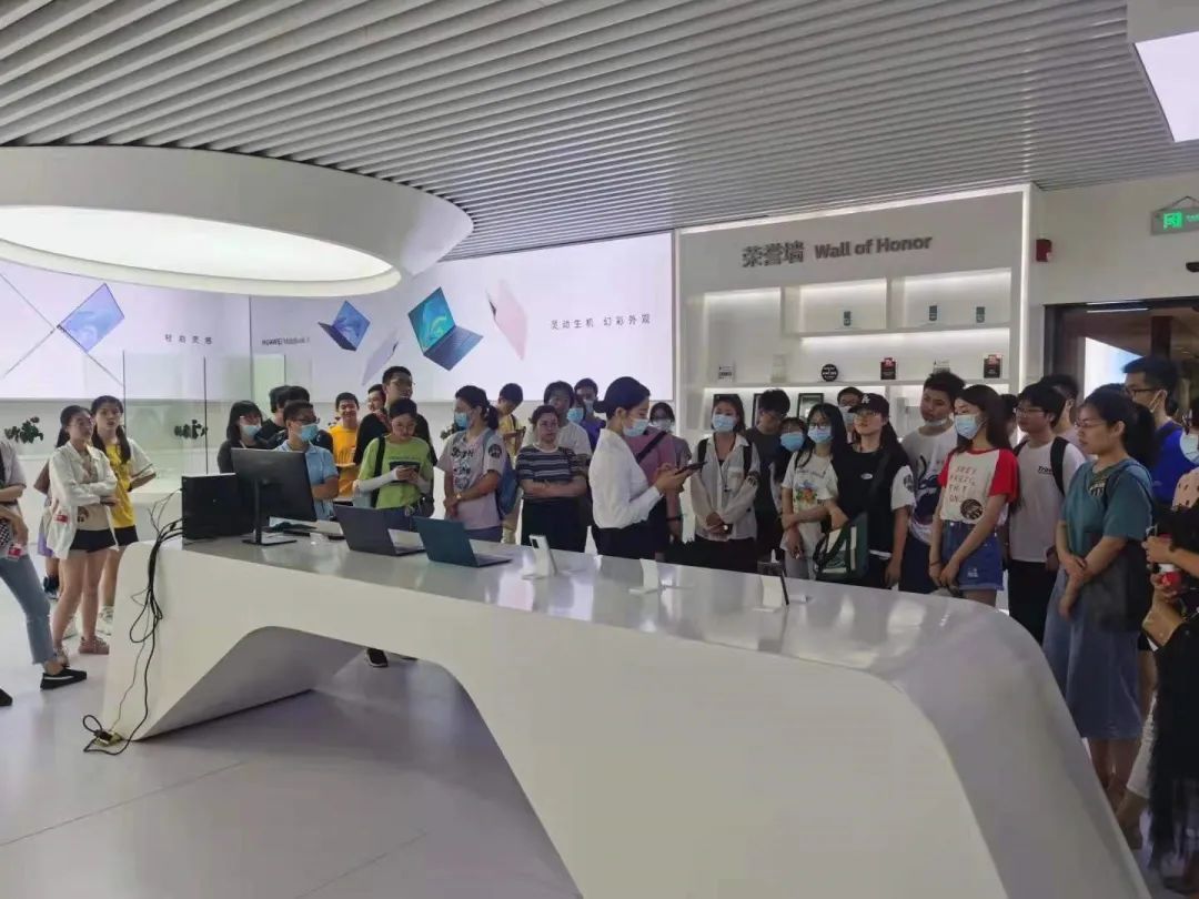 调研活动的第一站是华为武汉研究所。首先,由华为武研所的工作人员带领师生参观了公司的OpenLab展厅,详细地介绍了华为所生产的包括手机、笔记本电脑和可穿戴设备在内的终端产品。目前,华为正基于其新推出的HarmonyOS系统对各行业的家用电器产品在软件层进行整合,以期给消费者带来“一机控制”的全新智能家居体验。其次,华为公司背靠其强势的光电通讯技术,结合自身建设的华为云、5G通讯等技术为基础,支撑整个行业的智能升级,打造城市的“智慧大脑”,探索建设“数字孪生城市”。期间,讲解人员向同学们介绍了华为与深圳市合作打造的“智慧龙岗”项目情况,并表示正与武汉市政府合作,推进武汉市的区域智慧升级项目。此外,华为还为武汉车谷的相关企业提供商业化自动/辅助驾驶解决方案,利用自身的IoT技术和鸿蒙操作系统的互动优势,与多家企业合作,为车企的自动驾驶行业发展注入强劲推力。
