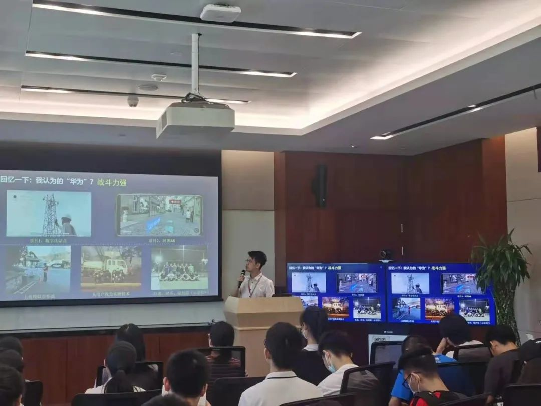 会间,华为武汉研究所组织武汉大学毕业、目前就职于其公司的各类岗位的优秀校友向同学们分享在华为的工作内容、工作感悟和生活趣事。首先是由优秀校友现华为武研所的人力资源经理朱晓倩向师生介绍了华为公司及武汉研究所业务。而后由张彦峰师兄和郭志雄师兄分别讲述了他们在各自的工作领域中的成长经历和感悟。最后是由实验室毕业的方伟师兄跟同学们分享了个人的求学、研究和工作经历,鼓励同学们要多思考、多实践,才能发现自己真正想做的是什么。
