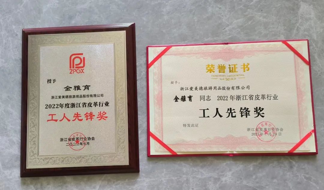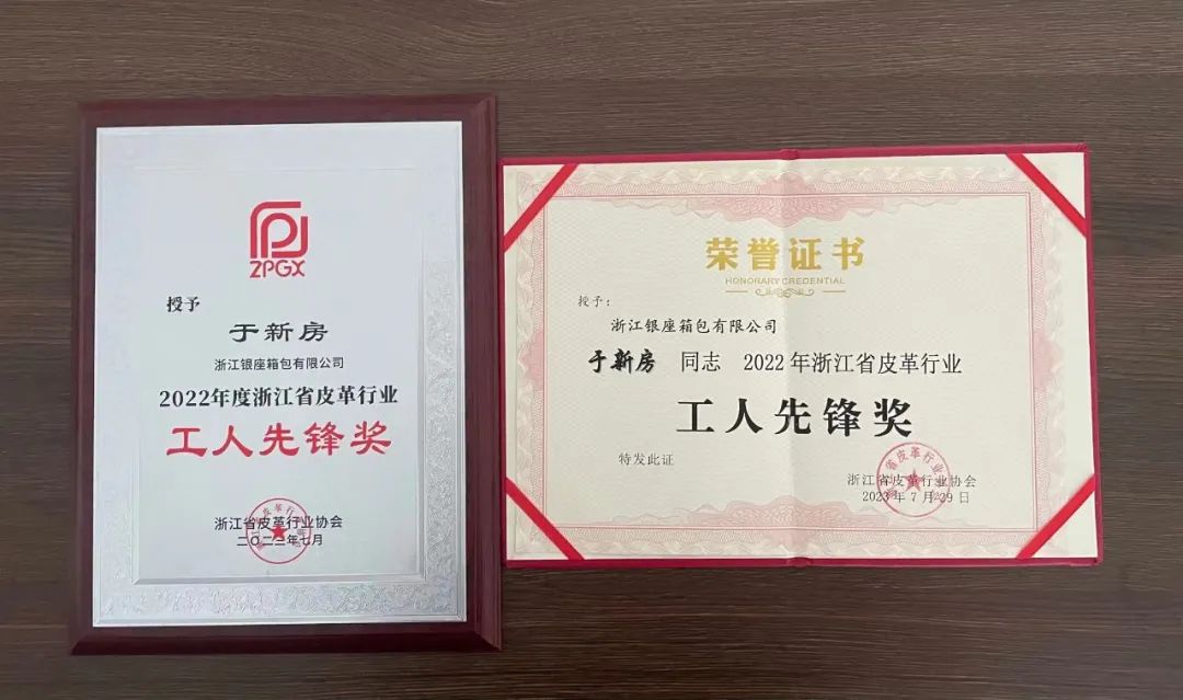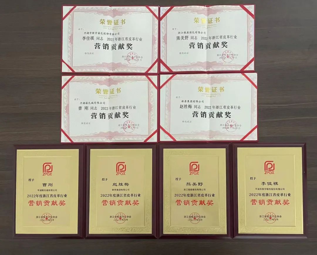 会上还进行了行业表彰,我协会与协会会长单位新秀集团获得“标准引领奖”称号;新秀集团、银座箱包、爱美德旅游用品获得“品牌卓越奖”称号;新宇箱包李佳祺、银座箱包熊美野、新秀集团赵胜梅、箱包城曹刚获得“2022年度浙江省皮革行业营销贡献奖”称号;纽优贸易李佳楠、银座箱包于新房、爱美德旅游用品金雅育获得“2022年度浙江省皮革行业工人先锋奖”称号。
