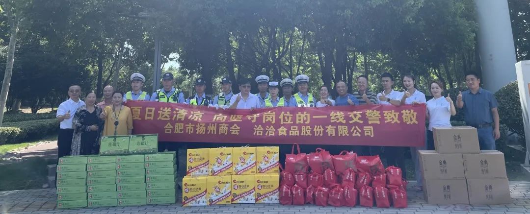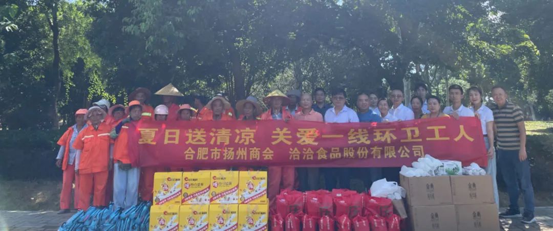 7月26日,包河区工商联、合肥市扬州商会联合洽洽食品股份有限公司、同庆楼餐饮股份有限公司共同举办“夏日送清凉-向坚守岗位的一线交警、环卫工人致敬”慰问活动。合肥市扬州商会执行会长林兵、常务副会长嵇瑞海等与一线工作者们亲切交流,对他们不畏酷暑、辛勤劳作的奉献精神表示敬意和感谢,叮嘱大家在紧张繁忙的工作同时也要保重身体,做好防暑降温措施。