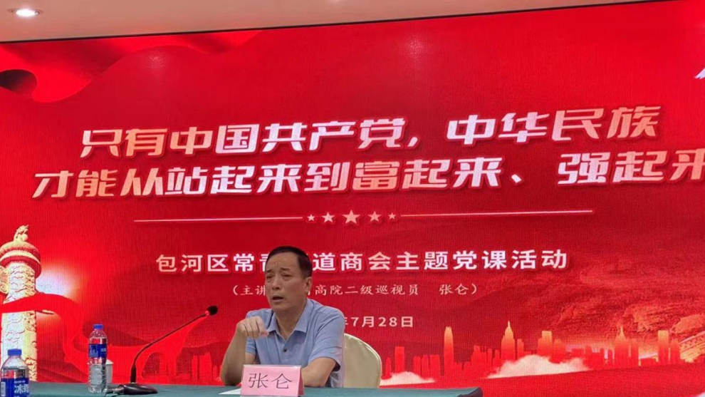 7月28日,常青街道商会党支部开展主题党日活动,邀请安徽省高级人民法院二级巡视员(高级警官)、省委选派非公党建指导员张仑上了一堂《只有中国共产党,中华民族才能从站起来到富起来,强起来》党课。区委统战部副部长、区工商联党组书记、常务副主席詹雄才,常青街道分管领导、商会会员企业党支部书记及支部委员、党员代表共40余人参加。张仑结合自己多年从事的部队政治工作经历讲述红色历史、分享精神感悟。今后商会党支部将充分发挥基层党组织战斗堡垒、政治引领、选拔人才、模范带头等作用,把党建工作做细做实。