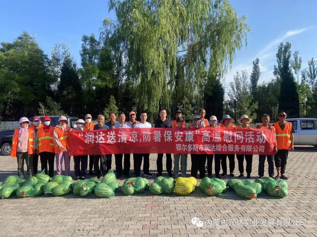 7月28日下午。公司总经理张晓宇及子公司——鄂尔多斯市润达综合服务有限公司董事长刘晓宇慰问园区环卫工作人员,并送去西瓜、绿豆等防暑物品。