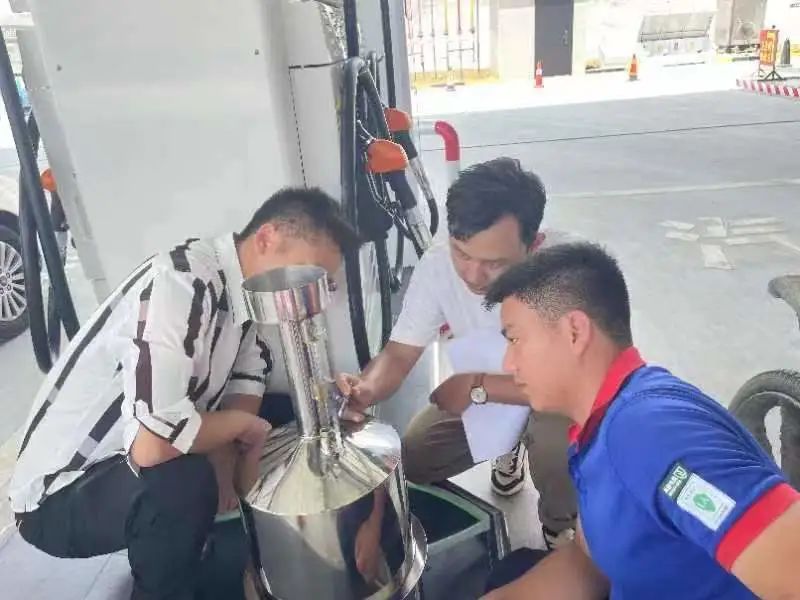 7月30日,综合能源站工作人员对加油机进行自校复检,将加油枪发油调至正常范围。