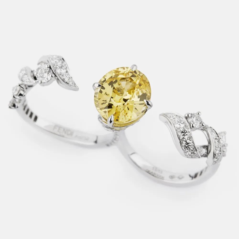 “Gioiello Giallo”主题以瑰丽明快的黄钻和黄色蓝宝石为主石,灵感源于芬迪代表色和罗马落日的颜色。