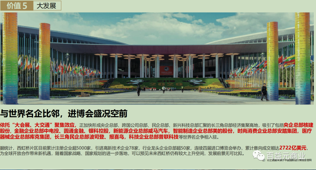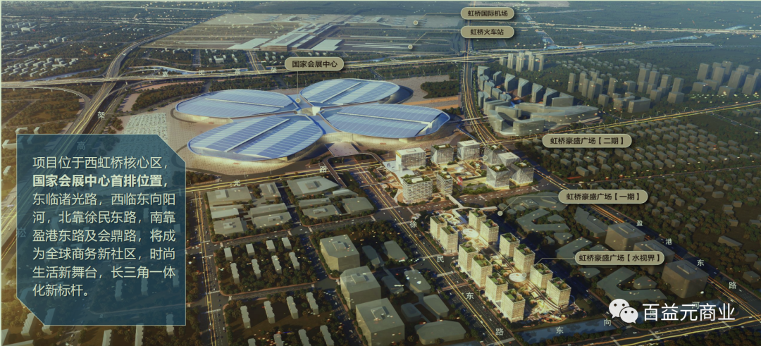 项目位于西虹桥核心区国家会展中心首排位置东临诸光路,西临东向阳河,北靠徐民东路,南靠盈港东路及会鼎路,将成为全球商务新社区,时尚生活新舞台,长三角一体化新标杆。