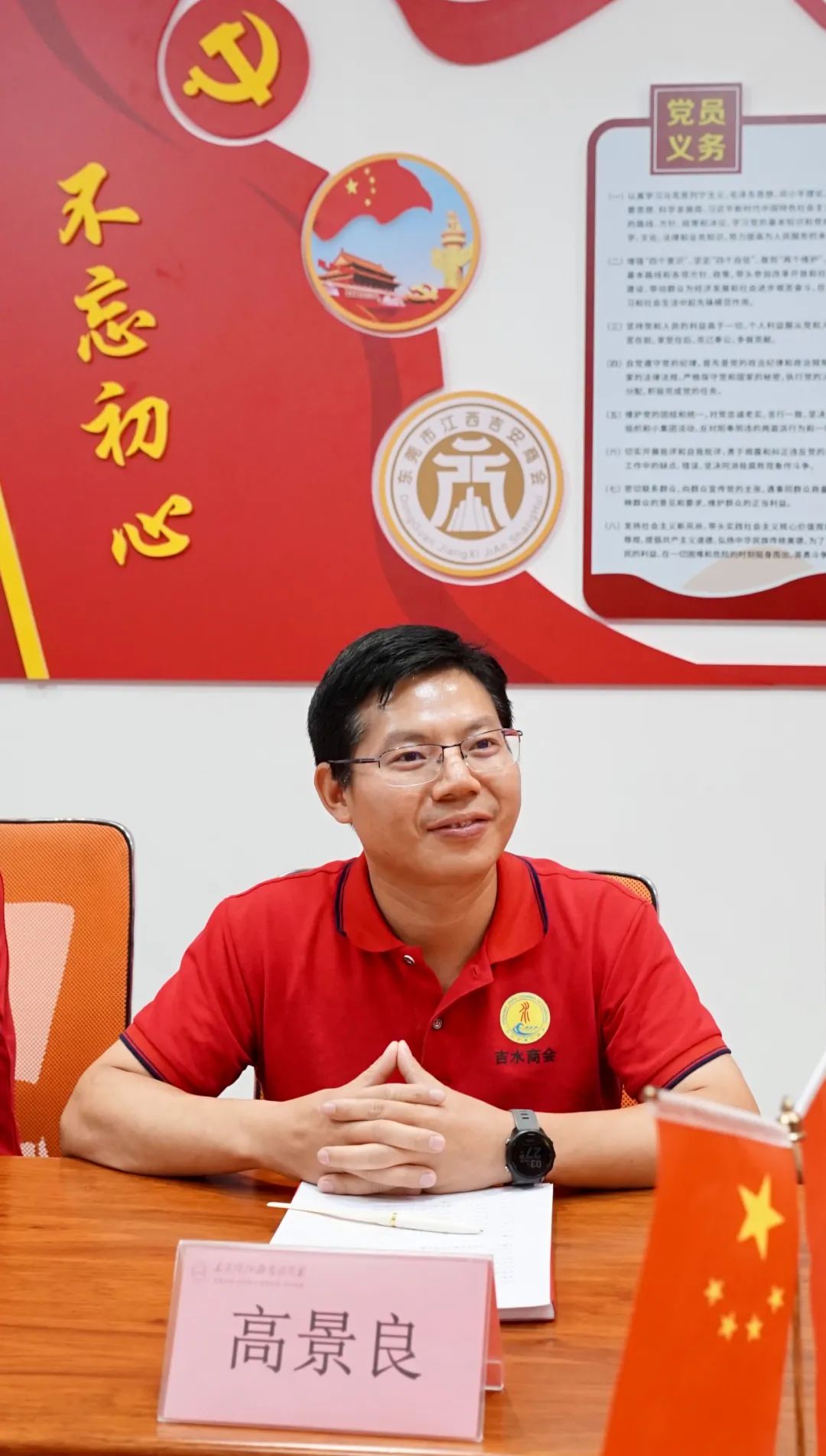 深圳市吉水商会会长高景良高度赞扬我会自成立以来取得的成绩,认可我会五大片区、专业委会员的架构建设,同时也介绍了深圳吉水县商会的发展建设。高会长表示经营企业要有圈子和贵人,通过不断学习,敏锐洞察客户对行业变化的信息,把企业定位做好,把品牌做大。商会亦如企业,只有不断学习,聆听会员心声,明白会员需求点,才能更好的与会员达成共识,做到商会不断壮大。希望今后两商会之间能保持良好交流,并诚邀东莞吉安商会到深圳吉水商会指导交流。