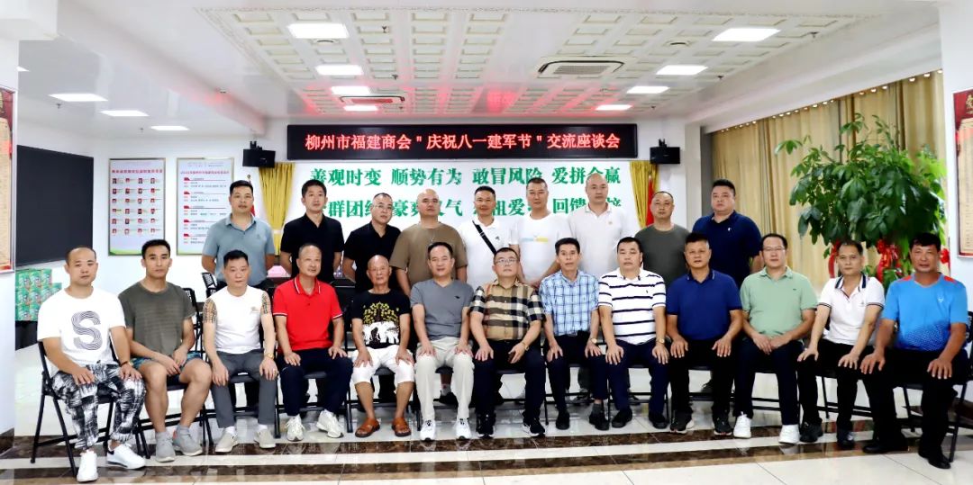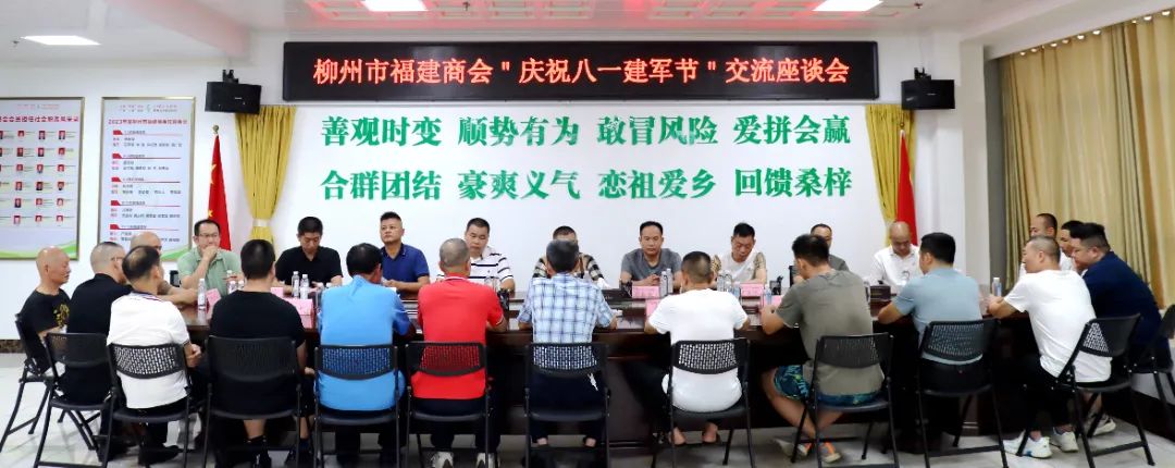 2023年7月30日,在中国人民解放军建军96周年即将到来之际,柳州市福建商会在商会八楼会议室举行庆祝“八一”建军节慰问座谈会,22名驻柳闽籍战友联谊会和在商会的转业、退伍军人应邀出席会议,商会会长黄志荣、常务执行会长苏报谷、党委书记陈玉坤、执行会长游品俤、总顾问傅志良等参加活动,黄志荣会长讲了话。