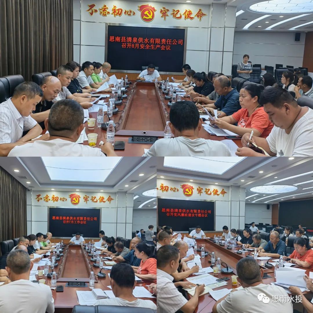7月28日,县清泉供水公司召开七月工作会议、召开八月安全生产会议及党风廉政建设专题会议,县清泉供水公司班子成员及各部门负责人参加会议。