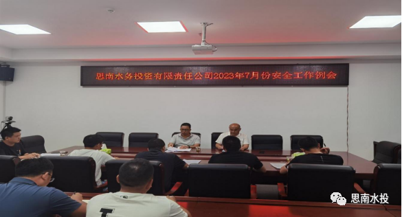 7月26日,思南水投公司党委副书记罗杜鹃组织召开七月份安全工作例会,并对下步工作进行安排部署,公司稽查安全部、各子公司分管负责人及稽查安全部人员参加会议。