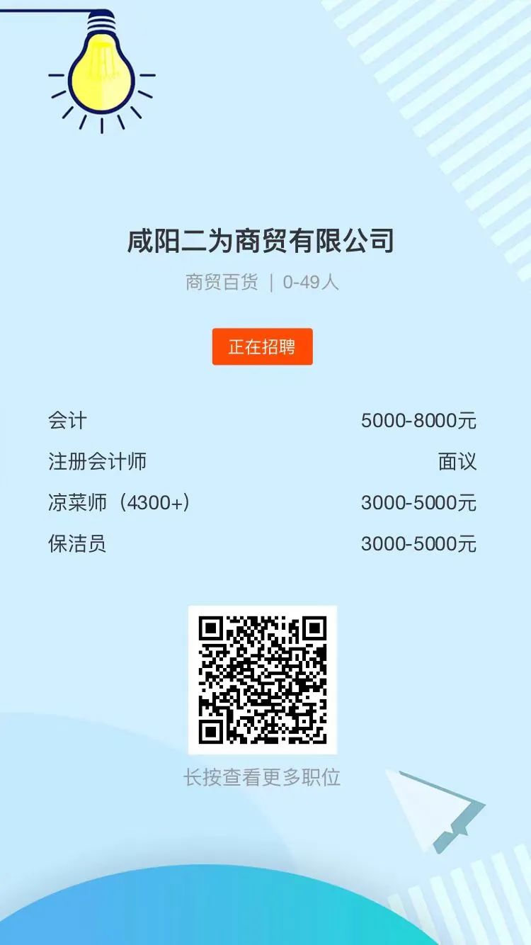 *提示:以上内容为网友发布,如在应聘过程中用人单位以任何名义向应聘者收取费用请提高警惕!本公众号对其内容的真实性不承担任何的责任,请网民自行判断!