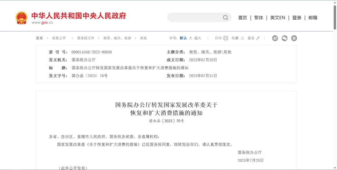 7月28日,国务院办公厅转发国家发展改革委关于恢复和扩大消费措施的通知。提出的20条关于恢复和扩大消费的措施中,涉及住房、新能源汽车、数字消费等领域。