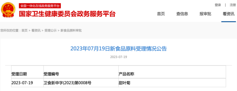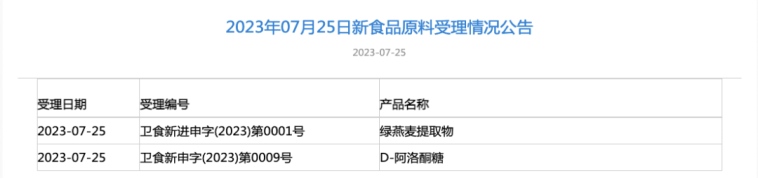 国家卫健委分别与7月19日、7月25日发布甜叶菊、绿燕麦提取物和D-阿洛酮糖3种新食品原料受理公告。其中: