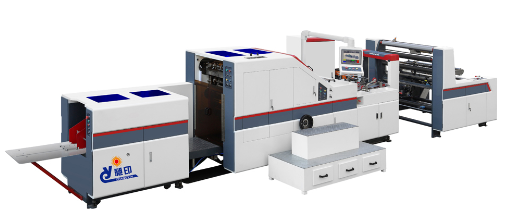 本机以卷筒纸、卷筒头卡纸和纸绳为原料,一次性完成带手挽方底纸袋的生产,是快速生产手提纸袋的理想设备。在一台机器完成手挽制作、手挽上胶粘贴、纸筒成型、纸筒裁切、袋底压线和袋底上胶、成型等步骤,实现了全自动化生产,能够有效节省人工成本,提高工作效率。