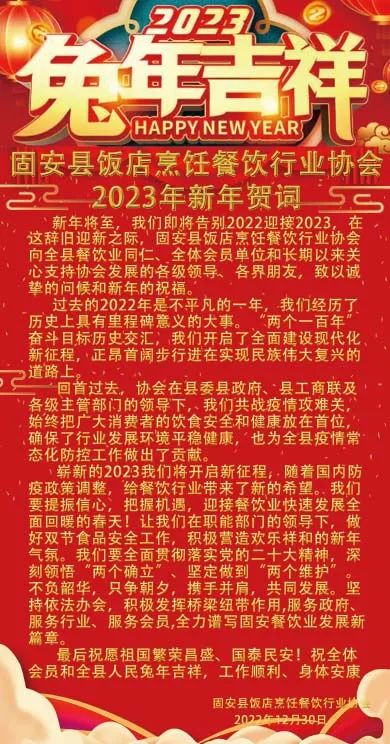 固安县饭店烹饪餐饮行业协会2023年新年贺词
