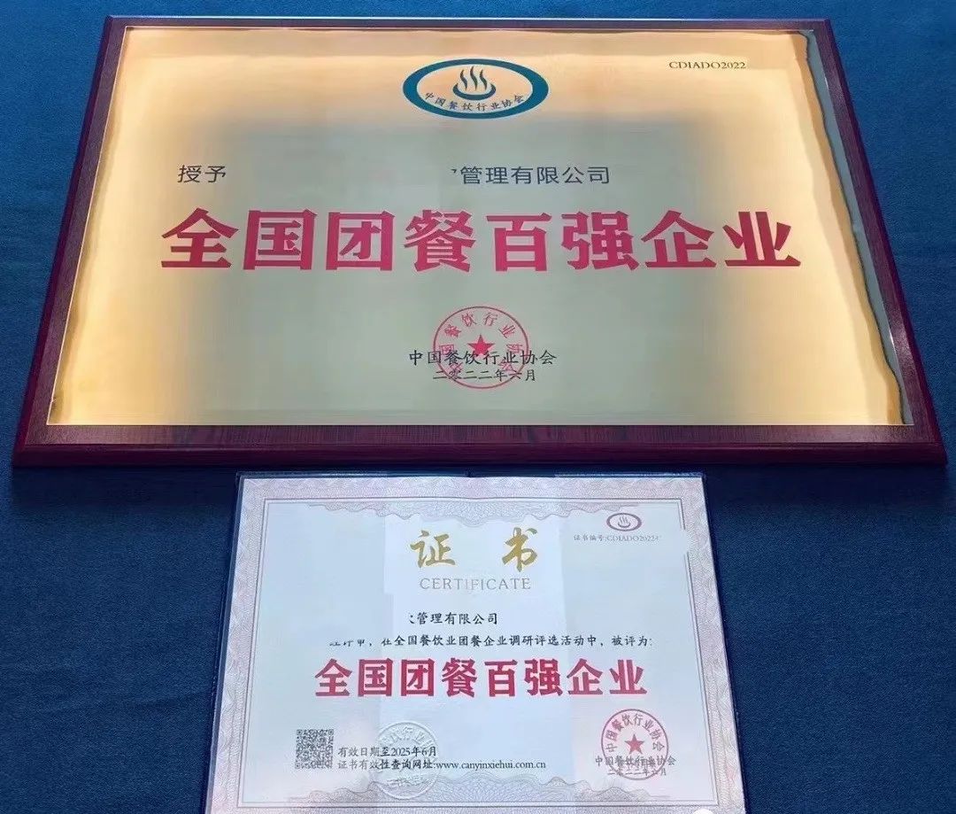 全国团餐百强企业、团餐经营管理示范单位、省团餐百强、全国团餐先进单位、政府采购优秀供应商、重质守信-3.15满意单位、团餐经营示范管理单位、中国高校团餐十大品牌、中国优秀团餐企业等