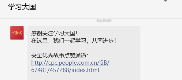由国资委宣传局、人民网联合举办的第六届中央企业优秀故事创作展示活动中,集团公司共有9部图文作品、3部视频作品入围中央企业优秀故事评选,按照活动部署,点赞投票截止日期为8月4日,请大家积极发动职工群众为新兴际华优秀故事点赞!!1、关注“学习大国”微信公众号,点击内部推送链接,即可登录第六届中央企业优秀故事展示点赞网站。