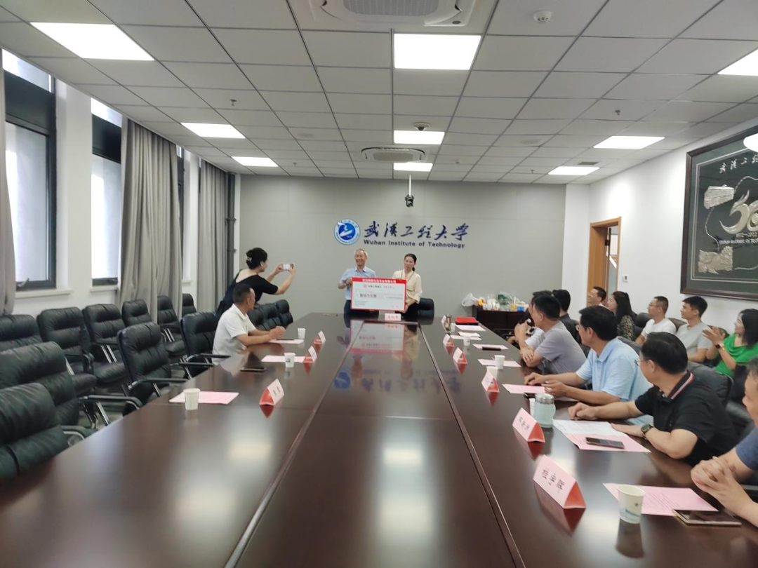 邓新洲代表学校教育发展基金会与杨驰升签订了捐赠协议。武汉工程大学艺术设计学院院长桂宇晖与杨驰升签订校企合作协议。学校专职副秘书长毕灵敏代表学校基金会接受了企业捐赠的支票。