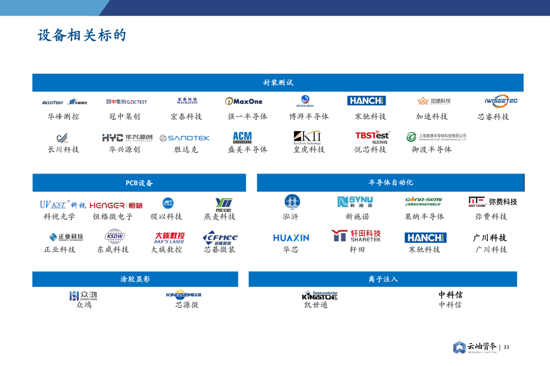 其中,ABF载板技术壁垒最高,面向CPU、GPU、FPGA、ASIC等算力芯片,2021年全球ABF载板供给缺口达30%,预计产能还将吃紧至2026年。随着高性能、高算力芯片需求高企,FC-BGA 已成为IC载板行业规模最大、增速最快的细分领域。据Prismark预测,2026年ABF载板市场规模将达到121亿美元。 当前,全球ABF载板产能集中于中国台湾、日本和韩国,2021年CR7达95%,国产化率几乎为零。目前欣兴电子、斐电(Ibiden)和奥特斯(AT&S)三家市占率最高,2021年市占率分別为22%、19%和16%。 半导体设备/材料、模拟芯片等领域需要高端国产替代,美国对华半导体设备出口管制政策升级,工业、医疗、汽车等领域高湍模拟和数模混合芯片会长期持续国产替代进程,为国产半导体设备/材料企业带来重大挑战和机遇。 虽然外部环境对国内半导体的监管日益加强,但近年来国内涌现了大量半导体设备优秀企业,中微公司、北方华创、邑文科技、磐石创新都是发展迅速的半导体设备公司,其中邑文科技主营碳化硅自研薄膜、刻蚀设备,磐石创新主营新型半导体材料单、多晶长晶设备。 材料领域近年来涌现了一批优秀企业,超芯星、铭镓半导体、汉骅半导体都是发展迅速的第三代半导体公司,宏芯气体、追光科技在各自领域都已占据领先身位,科睿斯、新菲新材料在封装材料领域积累深厚、优势明显。财通证券|2022年IC载板行业研究报告 IC载板供不应求,国产迎来替代空间广东融泰私募基金管理有限公司是崇业资本旗下一家在中国证券基金协会备案登记的专业股权投资管理机构(登记编号:P1071713)。核心团队均曾在全国性大型金融机构任中、高级管理人员,从事投融资工作近20年,实践经验丰富。公司在新一代信息技术、半导体、清洁能源、新能源汽车、生物科技、水务环保、大数据中心等领域有深入的研究及实践,在多个细分领域积累了丰富的投资经验与产业资源。管理公司和核心团队均大比例领投或跟投所有投资项目,并通过行业和区域资源整合,深度协同与赋能被投企业,形成成熟稳健的独特投资模式,已取得良好的投资成果。崇业资本一直秉承“专业、专注、赋能、扎实”的理念,为被投资企业提供市场、管理、规划、融资等服务,全方位赋能被投企业,多年来打造出多个高收益知名项目。