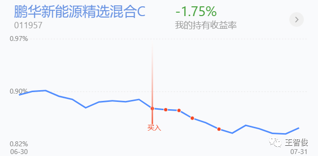 二 新能源 混合类新能源 $鹏华新能源精选混合C$ ,这个基金是新能源混合,光伏,锂电都有,最近表现还不错,小俊加一千元,因为新能源最受指数影响,后面开始倍投。
