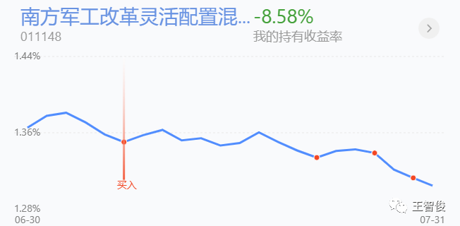一 军工天天跌,这波行情军工基本没赚钱,还亏了,还好前面小俊清了一个军工,今天先加一千500 $南方军工改革灵活配置混合C$