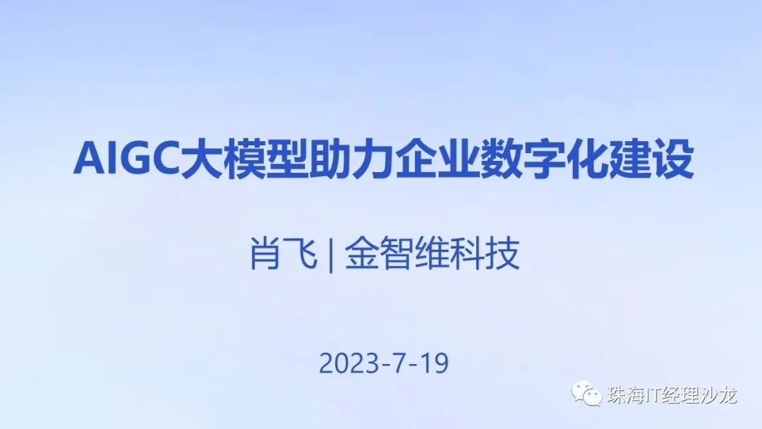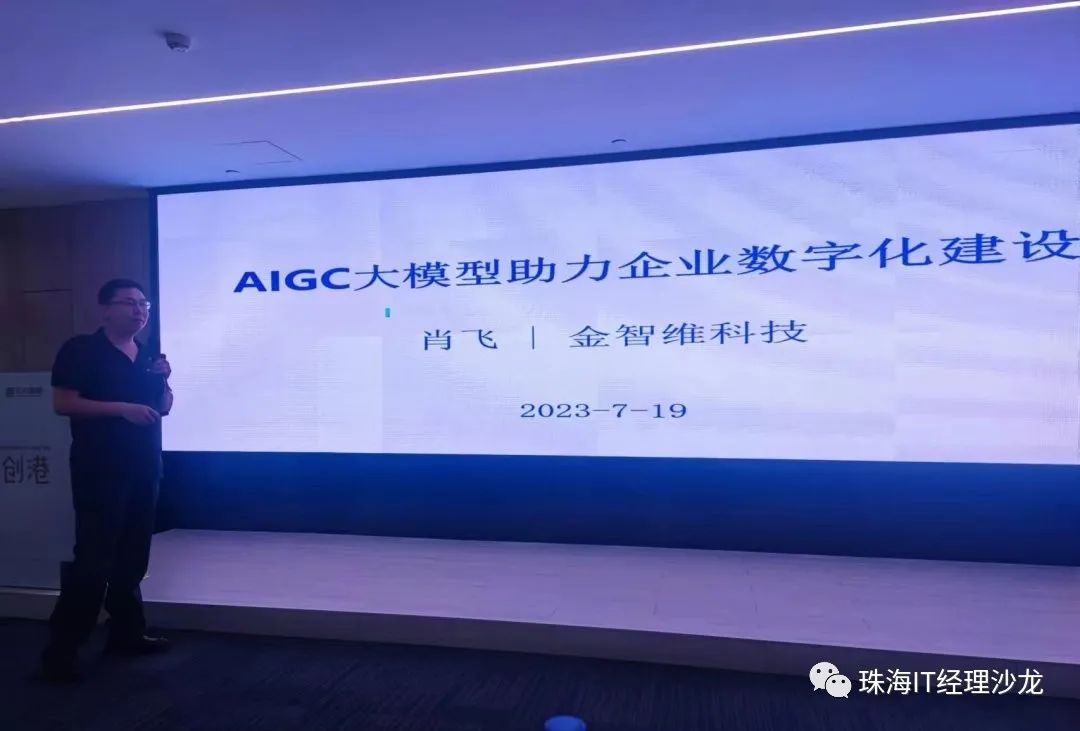 本场活动的第一位分享嘉宾是来自珠海金智维信息科技有限公司的联合创始人兼产品中心技术总监肖飞先生,他为大家带来《AIGC大模型助力企业数字化建设》主题分享。