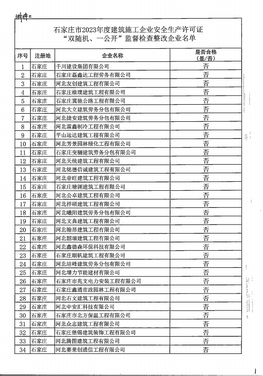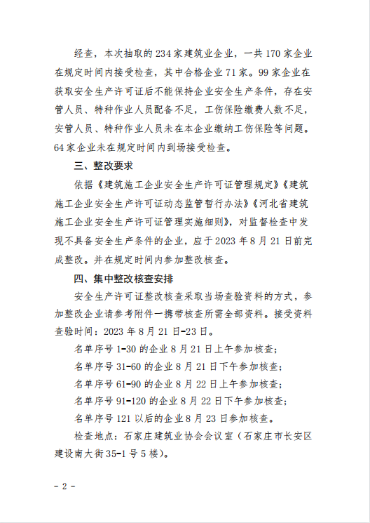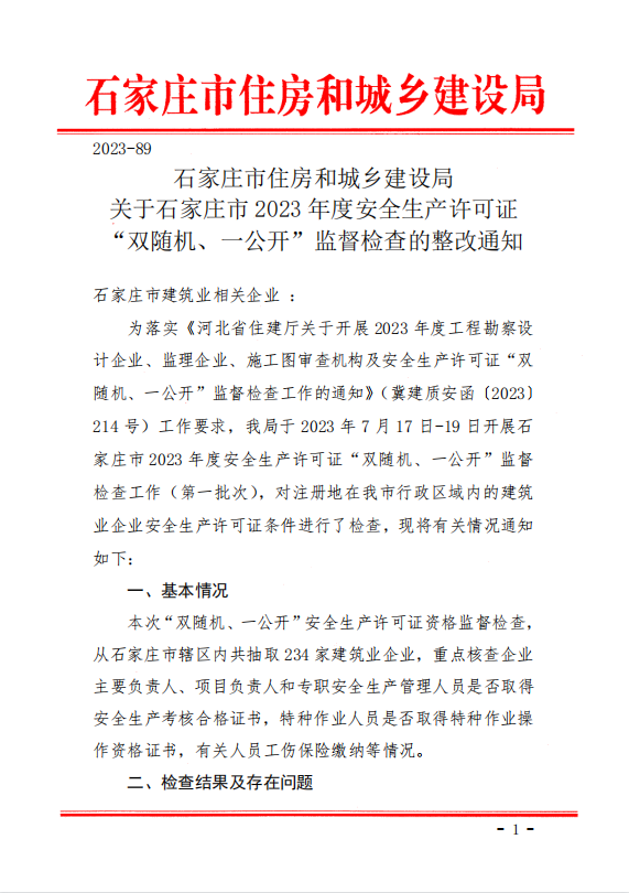 关于2023年度省级建筑施工企业安全生产许可证“双随机、一公开”监督检查情况的通知