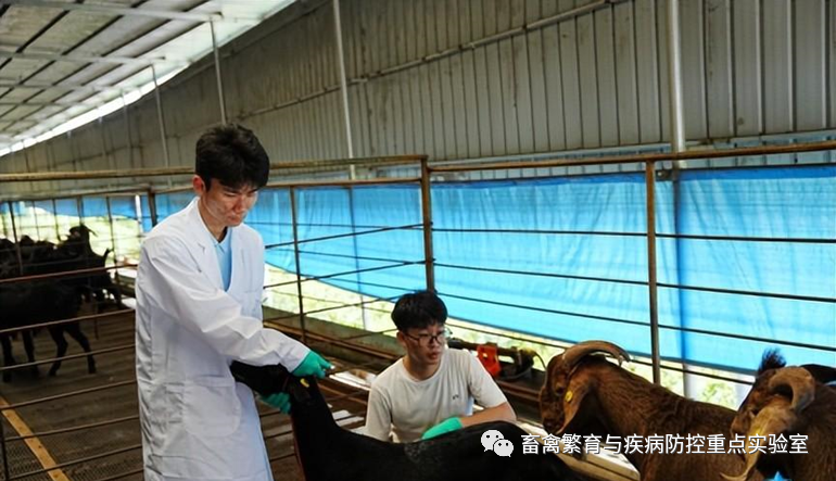 广西大学动物科学技术学院研究生在羊舍采集样本
