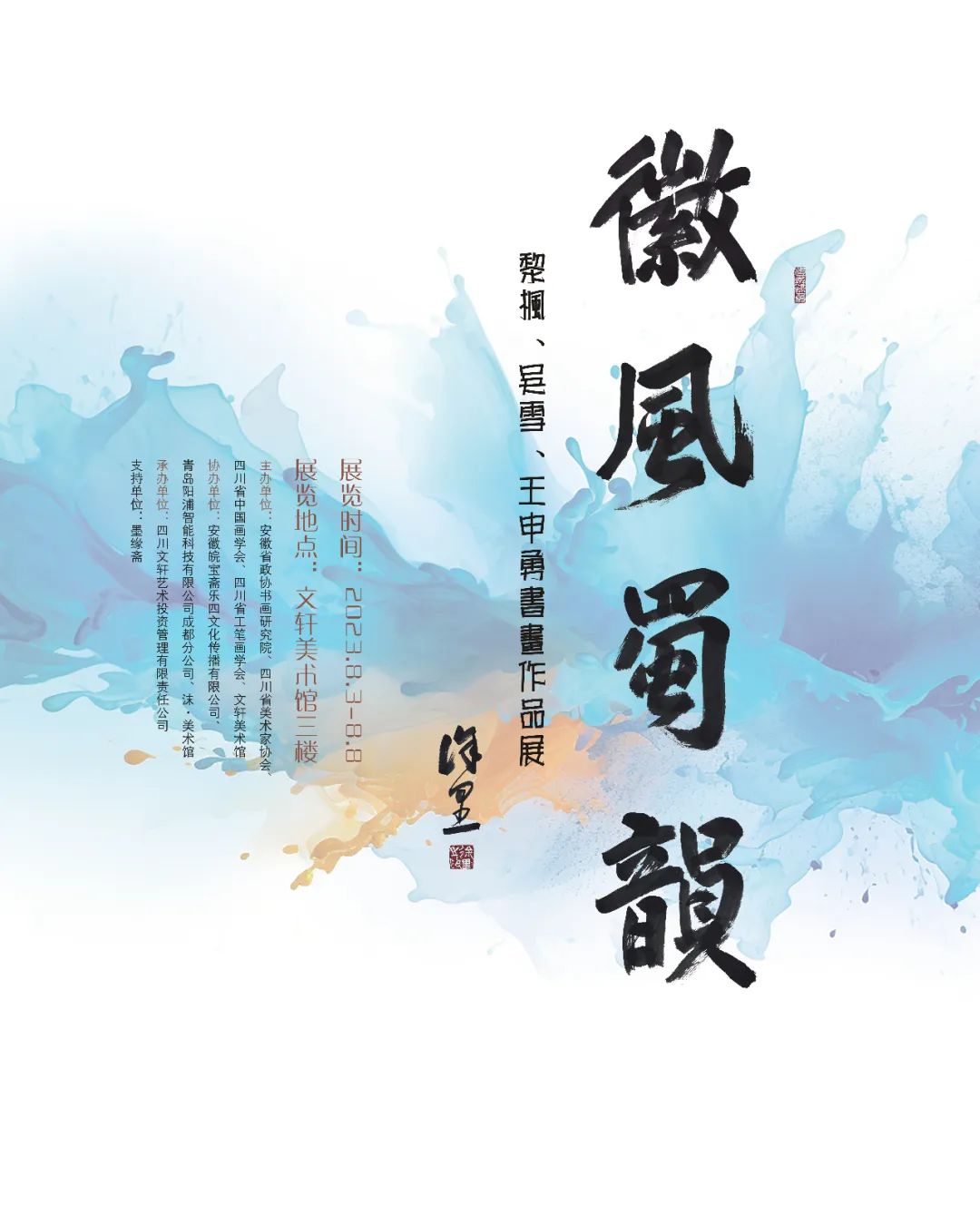 乘着大运会的东风,徽风蜀韵——黎枫、吴雪、王申勇书画作品展在文轩美术馆与观众见面了。犹如老友相逢,此展不仅拉近了蜀皖之间的距离,而且给大运会增添了一道欢快祥和的风景。徽者,大美也。黄山九华的秀美,淮河长江的包容,老庄思想的睿智,徽州文化的和谐,使得处在江淮之间的安徽人能够联通东西,兼容南北,承先启后,敢为人先。巴蜀之地,千峰竞秀,海纳百川。巴山蜀水的雄险,三星堆的神秘,天府之国的自得,巴蜀文化的开放,让四川自古才俊倍出,群星璀璨。既兼容并蓄,又开放鼎新。艺术改变世界。因为艺术,拉近了彼此的距离;因为艺术,增进了彼此的了解。艺术贵在交流。交流促进发展。皖蜀文化各异,但文脉相联,文心相通。此展旨在搭建平台,促进交流,取长补短,携手共赢。黎枫是徐悲鸿后人。来成都办展是她多年的宿愿。上个世纪四十年代,徐悲鸿在巴蜀地区创作一大批传世佳作,还创办了中国美术教育院,极大的推动了现代院校体系的美术教育发展,对中国艺术的发展起到举足轻重的作用。与此同时,他还在巴蜀地区写生、交流、办展,与张大千等艺术家探讨中国画现代化的问题,对现代美术发展起到了积极的促进作用,为我们留下了宝贵的精神财富。黎枫的作品不仅继承了悲鸿先生的艺术,更弘扬了悲鸿先生的爱国精神。无论是山水人物,还是花鸟奔马,都凝结着对成都的眷恋和向往,充满着对新时代成都的赞美和期盼。徽风蜀韵,悲鸿先生与成都的情缘定会在火热的季节绽放出更加绚烂的花朶,续写出更为精彩的篇章。吴雪是来自庄子故里安徽蒙城的一位艺术家。淮北平原对巴山蜀水的那份情愫,可能会比四川人对皖山皖水的感觉更为浓重、更为强烈。安徽的北方是一望无际的大平原。正是这种广阔无垠平原造就了淮北人的那种豪放,那种豁达。所以,你从吴雪的作品中不难看到那种爽劲,那种豪迈。然而,正是缘于南北东西这种差异,使得生于北方的艺术家更向往西部的雄奇和奔放,向往成都的那种让人留连不舍的味道。距离产生美,差异激发灵感。吴雪的作品更多的是对天府成都的倾诉和对远方的呼唤。传统与时尚,东部与西部,守正与出新,相互交织,相互碰撞。新的时代让我们彼此走得更近,也必定会让我们的未来变得更加宽广。王申勇是中国传统走兽画派中的后起之秀,他以绘黑白二色熊猫为题材的作品首先进入人们的视界,掌握了一套堪称传承古今的工笔动物画新技法,其画面效果有纤毫毕现、精细入微的直观感觉,在当代工笔花鸟领域又有所拓展,开辟了自己特别的天地。其笔下的虎、马、牛、猴等,在寻常意义上的视觉效果无疑是精致动人、神形兼备、令人喜爱的。王申勇一方面努力使作品中的生灵承载人性,以其文化内涵代替无病呻吟、柔弱浮浅的描绘;另一方面,他的作品逐渐远离一些传统花鸟画的格局程式,用严谨静雅消解粗犷、豪放,因而呈现出强烈的个人情怀和特有的生命意识,同时保持着应有的绘画性。此曲只应天上有,人间能得几回闻。新时代,新征程,新气象,新期待。充满活力的成都正以崭新的姿态广迎四海宾朋。魅力四川每天都给我们带来意想不到的惊喜和收获。艺术因生活而精彩,为生活放歌的艺术家们从来不会缺席书写时代的机遇。此次三位艺术家在成都联展,旨在弘扬悲鸿艺术精神,接续优良艺术传统,促进蜀皖艺术交流,推动两地艺术合作共赢。成都用鲜花和真诚拥抱时代的歌者,艺术家必将以自己的作品为锦城献上一曲心灵的歌唱。我们在似火的季节里出发,伴随着大运会青春的节奏,必将会收获一个金黄的秋天。