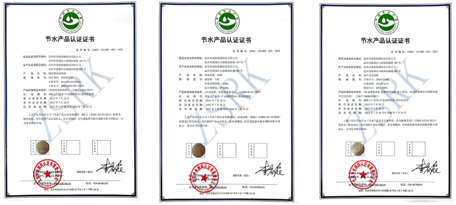 润新公司先后获评工信部专精特新重点“小巨人”企业、浙江省“隐形冠军”企业、浙江省绿色低碳工厂等荣誉称号。2023年7月,润新公司生产的陶瓷硬密性球阀、叠片式过滤器、智能水肥一体机成功获得节水产品认证证书。