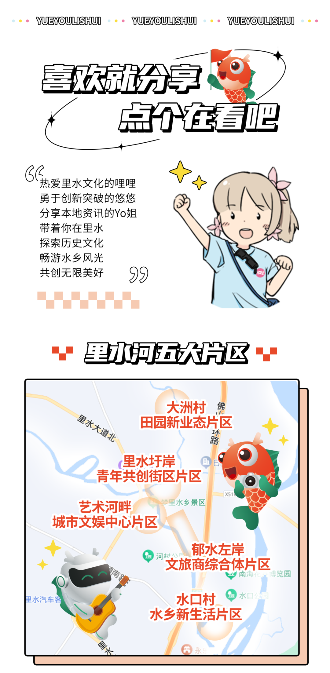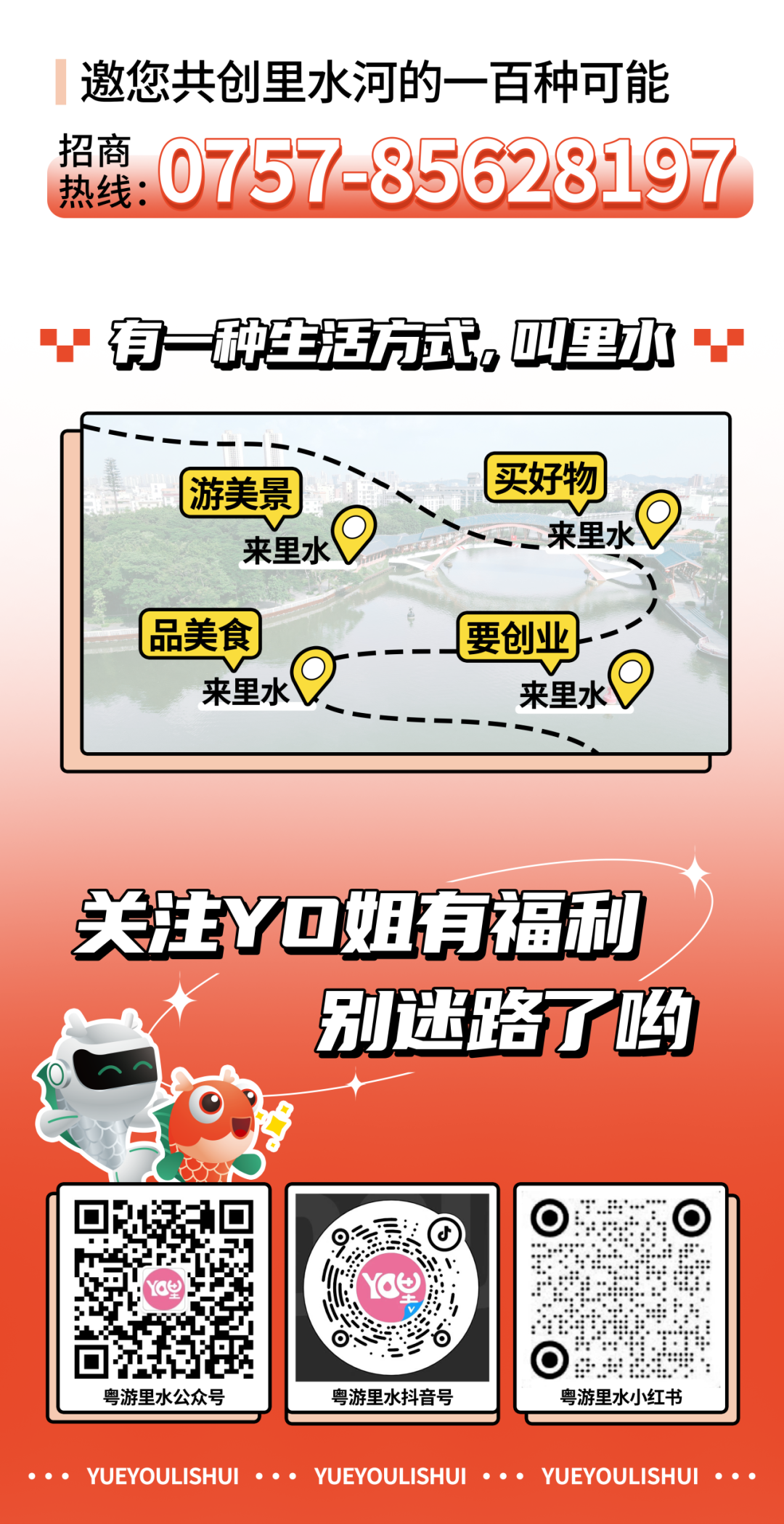 由此看见,里水未来的发展前景非常广阔! 近期,里水发布了「里水河开放共创计划」,将以“城、产、人、文”高质量融合发展为基本原则,通过系列策划进一步释放滨水价值空间,推动文旅商综合发展,共创“里水河的一百种可能”!想创业的有志人士,可到里水闯出你的天地!