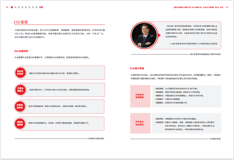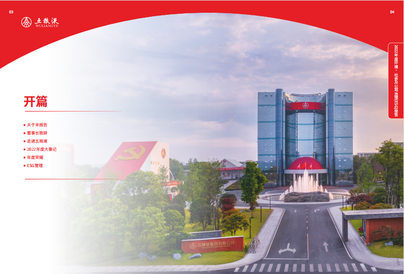 《五粮液2022年度社会责任报告》共计88页,主要内容包括:ESG管理、公司治理、数字化建设、环境管理、文化建设、质量管理六个部分。