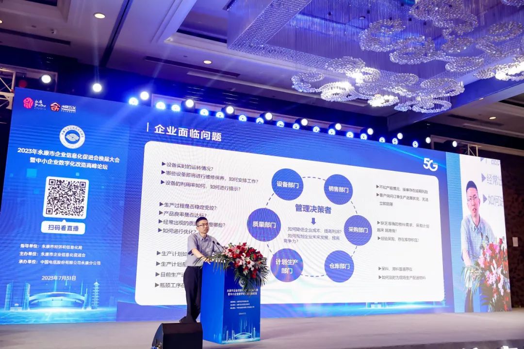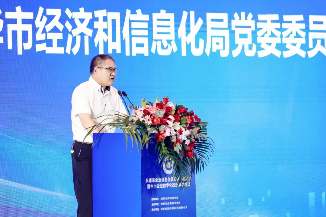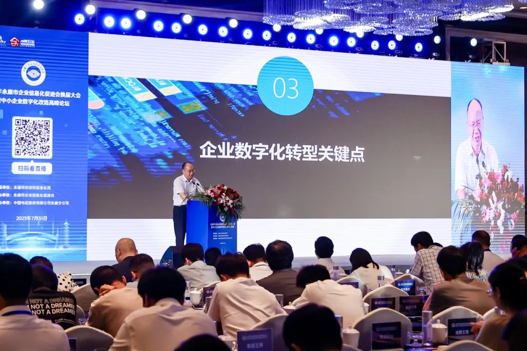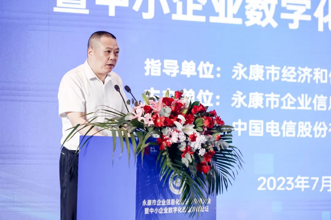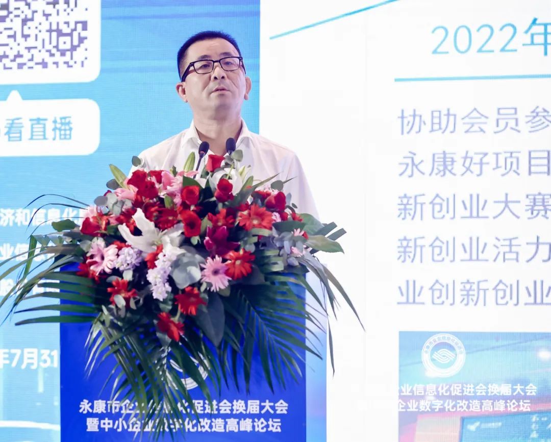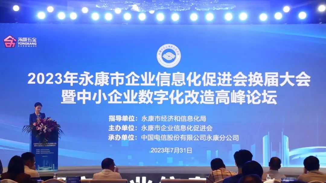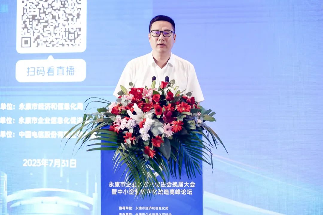 7月31日,由永康市经济和信息化局指导,永康市企业信息化促进会(以下简称促进会)主办,中国电信股份有限公司永康分公司承办的2023年永康市企业信息化促进会换届大会暨中小企业数字化改造高峰论坛在康廷大酒店举行,金华市经信局党委委员、副局长郭维固、浙江省企业信息化促进会常务副会长朱向荣受邀出席,永康市委常委、市政府党组成员李浩锋参加,永康市经信局、市发改局、市科技局、市财政局、市人力社保局、市市场监管局、市大数据局分管领导,各镇(街道、区)负责人及永康市企业信息化促进会的全体会员共230余人共同出席此次会议。