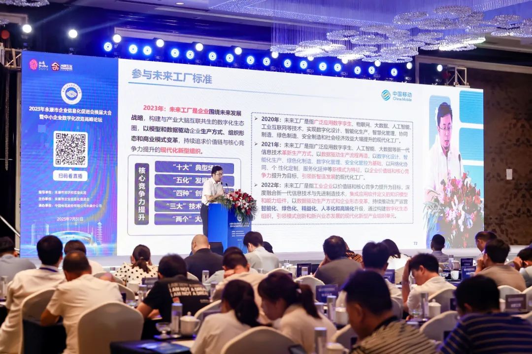 中国移动工业互联网和智能制造行业专家、浙江移动智能制造和工业互联网技术总监、浙江省未来工厂标准组核心成员叶冬以“5G+工业互联网”为切入点,列举企业数字化转型案例。