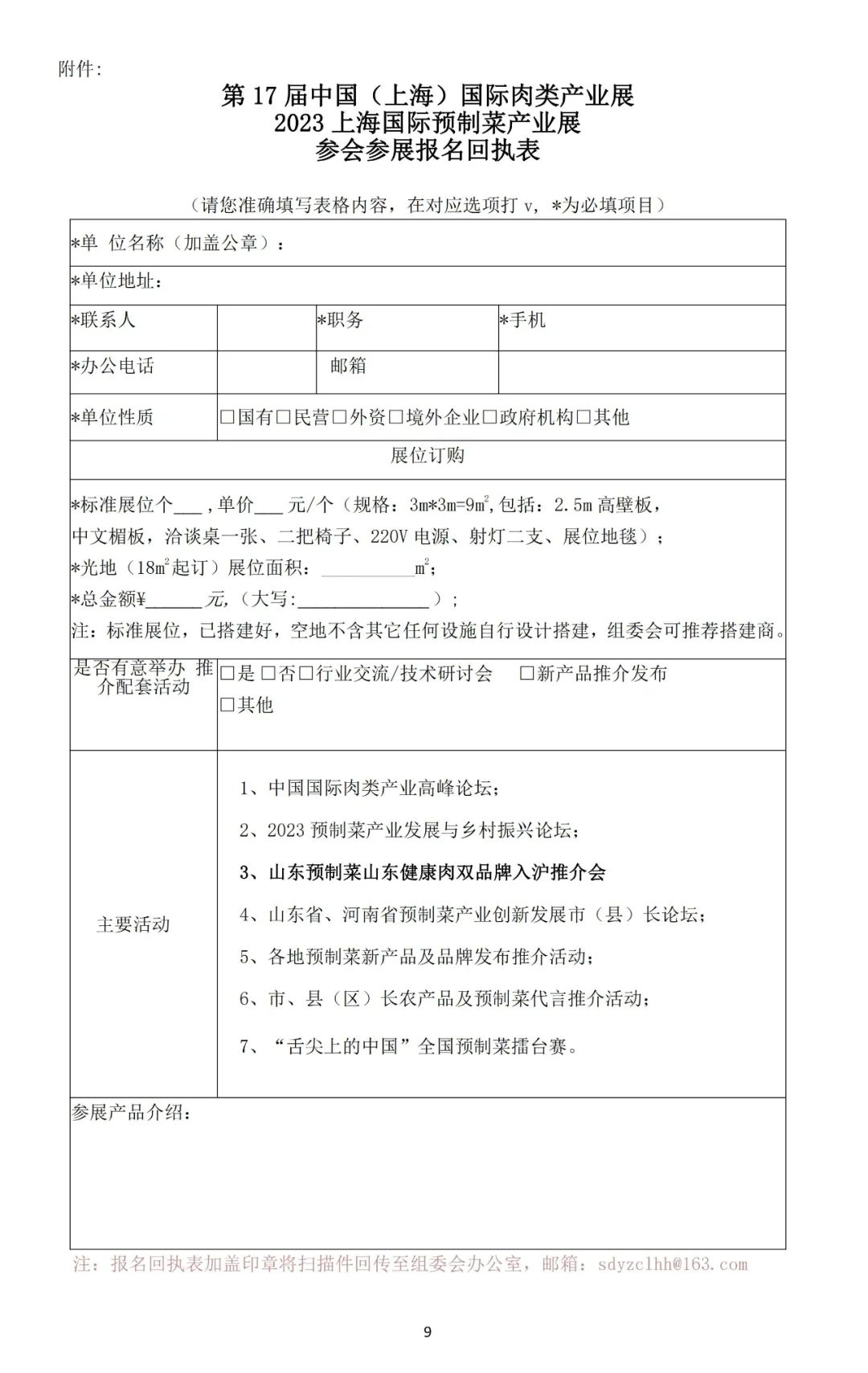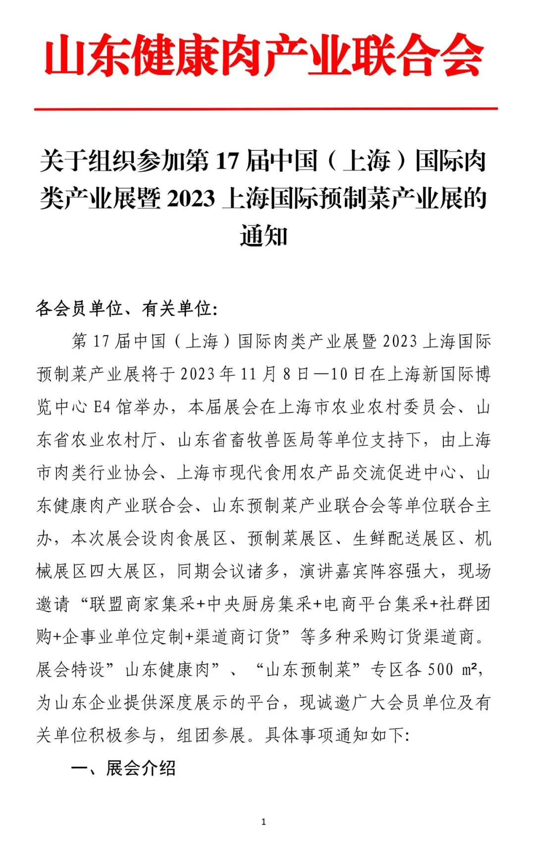 关于组织参加第 17 届中国(上海)国际肉类产业展暨 2023 上海国际预制菜产业展的通知