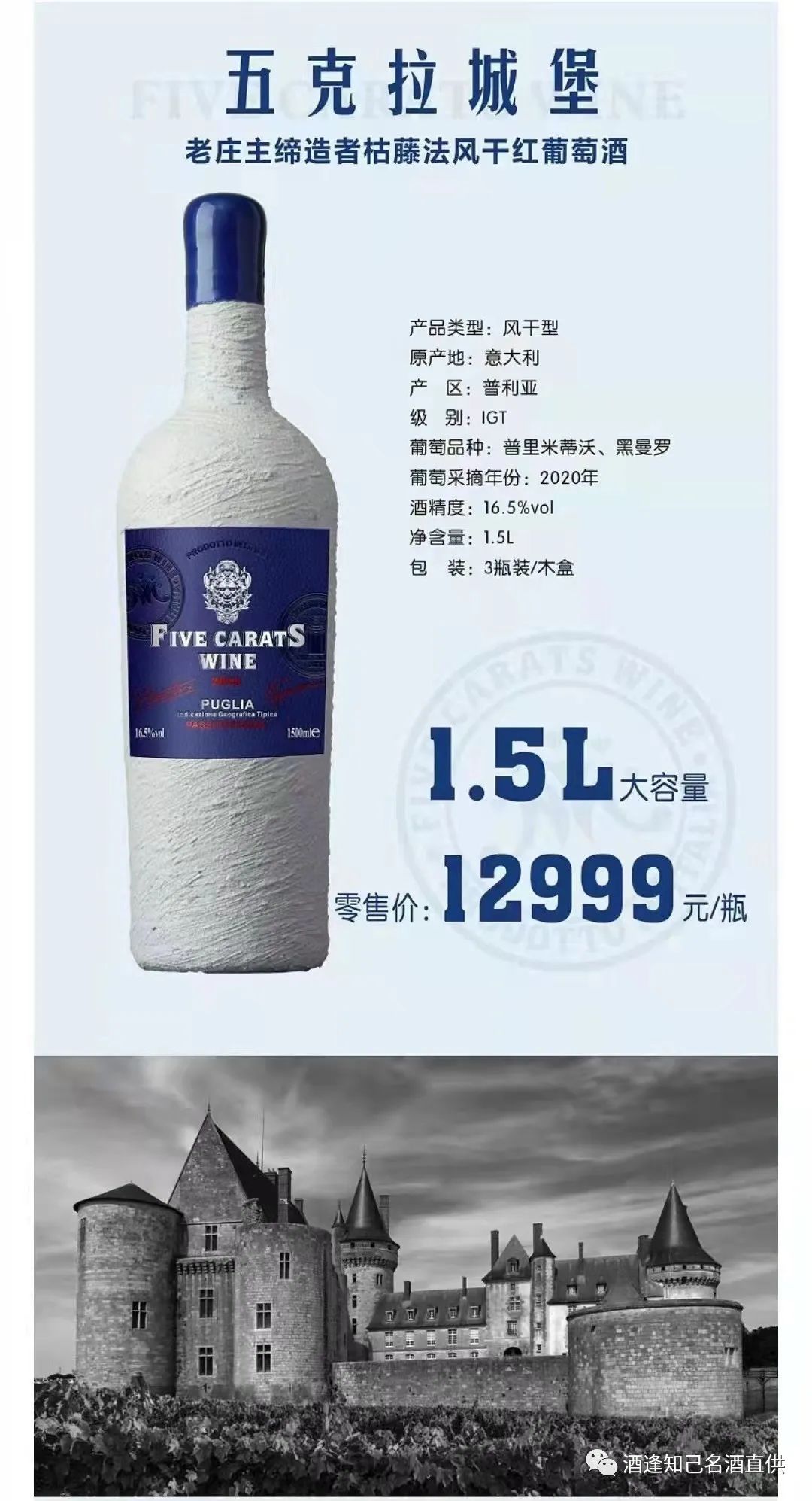1.5L 五克拉城堡干红属于意大利王牌葡萄酒之一。号称老庄主的缔造者、